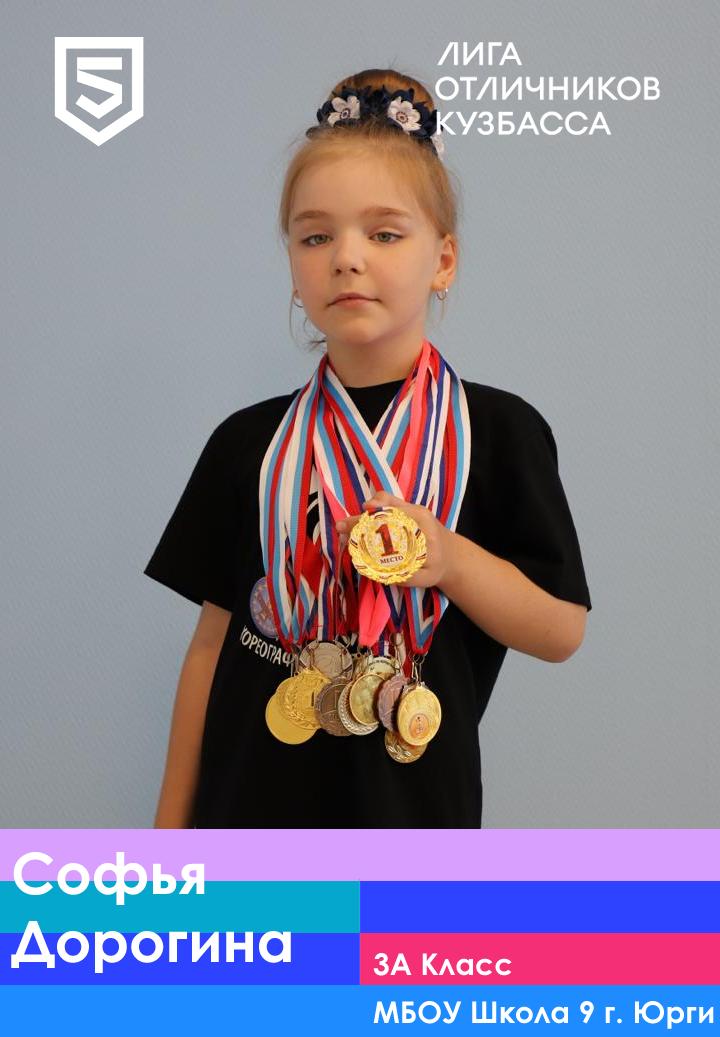 Меня зовут Софья Дорогина. Я учусь в школе № 9 города Юрги — современном и красивом учебном заведении.
